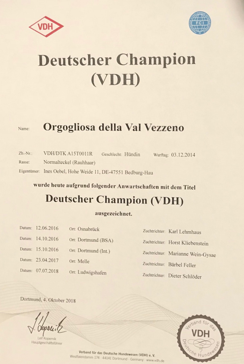 SfK, WT, SP/J Suchensieger, VPoSp, BhFK/95/J, BhN(F), I-InterVGP CACIT, I-Saupr, I-SchwhK/J, I-SchwhK/40, I-WaS CAC, PL-BhFK/J 100 Pkt., SchwhN, I-BhFK/J CAC, I-InterVGP CACiT